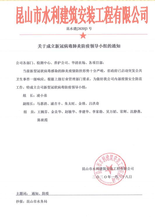 關(guān)于成立新冠病毒肺炎防疫領(lǐng)導小組的通知