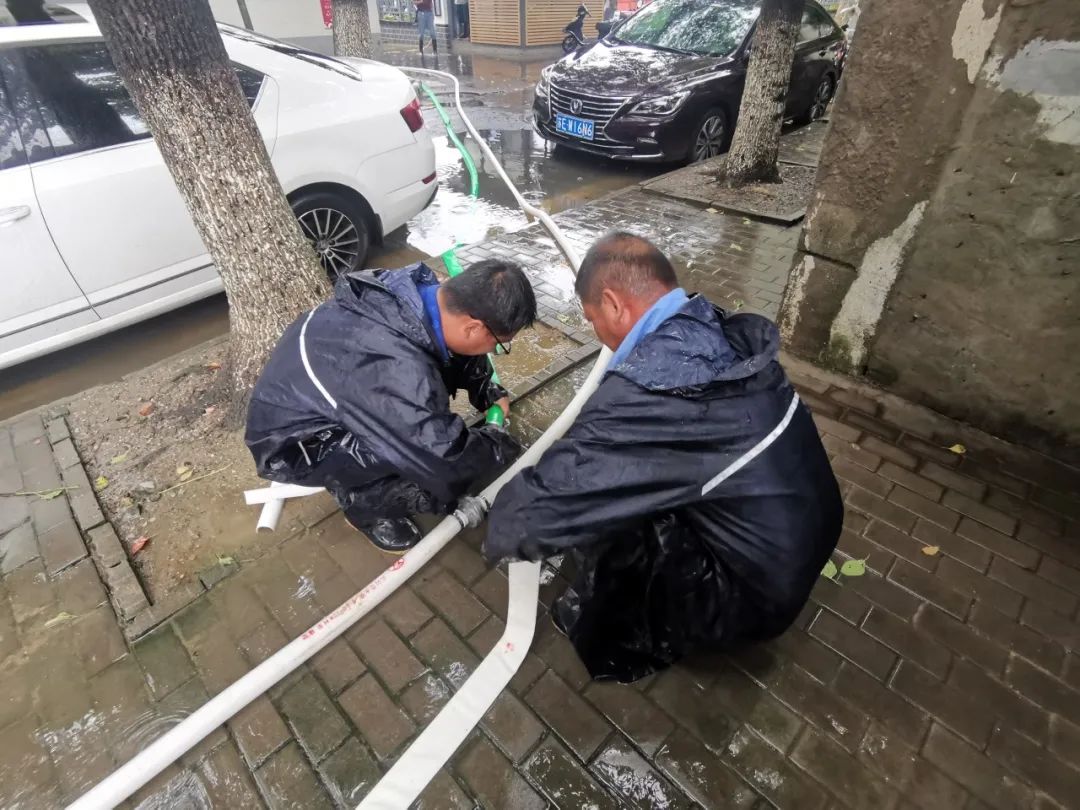 水建公司黨支部與亭林社區結對,負責社區內小區的積水排澇任務(wù),并向社區送去防汛物資。
