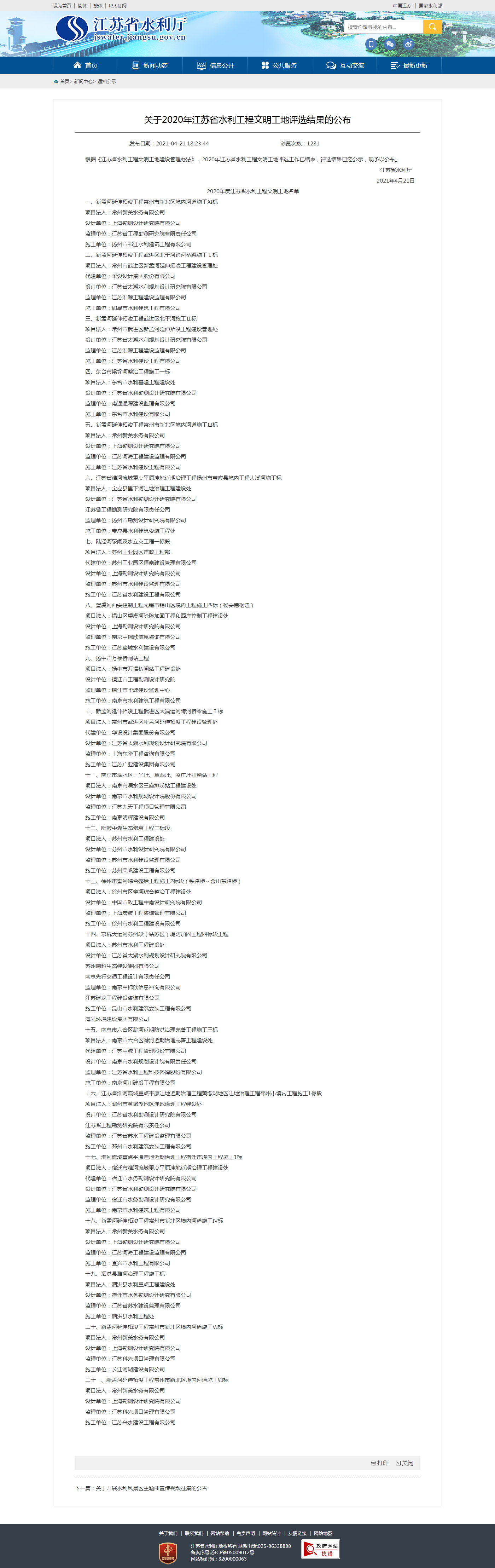 熱烈祝賀我公司京杭大運河蘇州段(姑蘇區)堤防加固工程四標段工程榮獲“江蘇省水利工程文明工地”稱(chēng)號