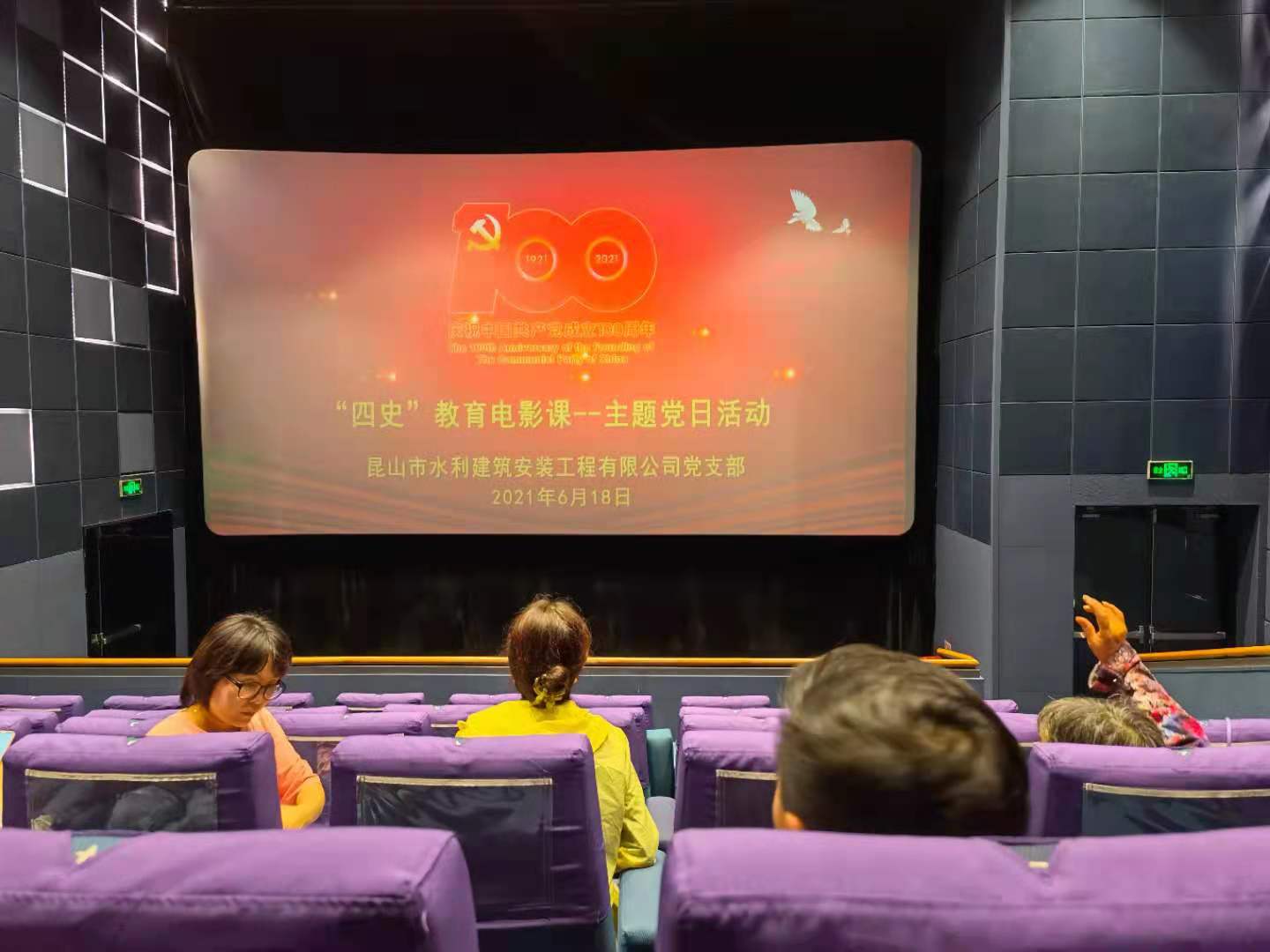 為慶祝中國共產(chǎn)黨成立100周年,支部開(kāi)展“四史”教育電影課--主題黨日活動(dòng),組織全體黨員觀(guān)看電影《攀登者》,時(shí)間:6月18日晚上18:30,地點(diǎn):昆山市西園影城(大戲院店)。