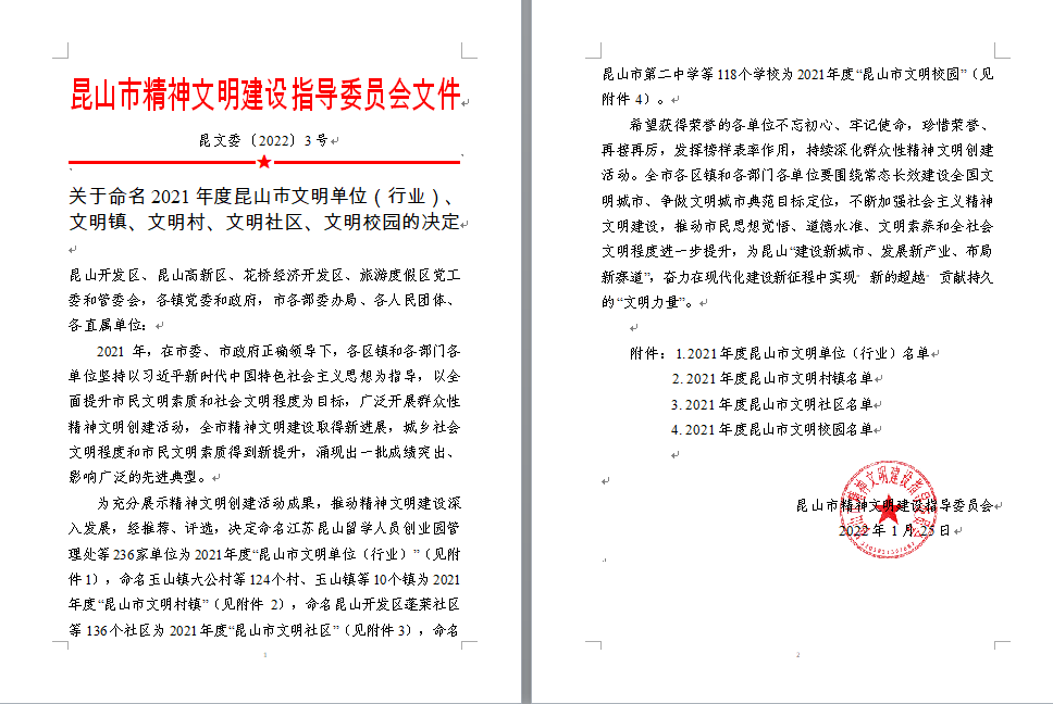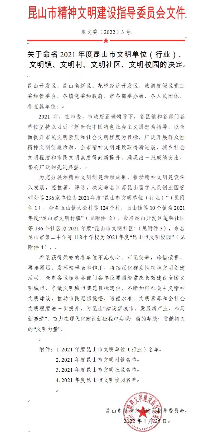熱烈祝賀我司榮獲“昆山市文明單位”稱(chēng)號