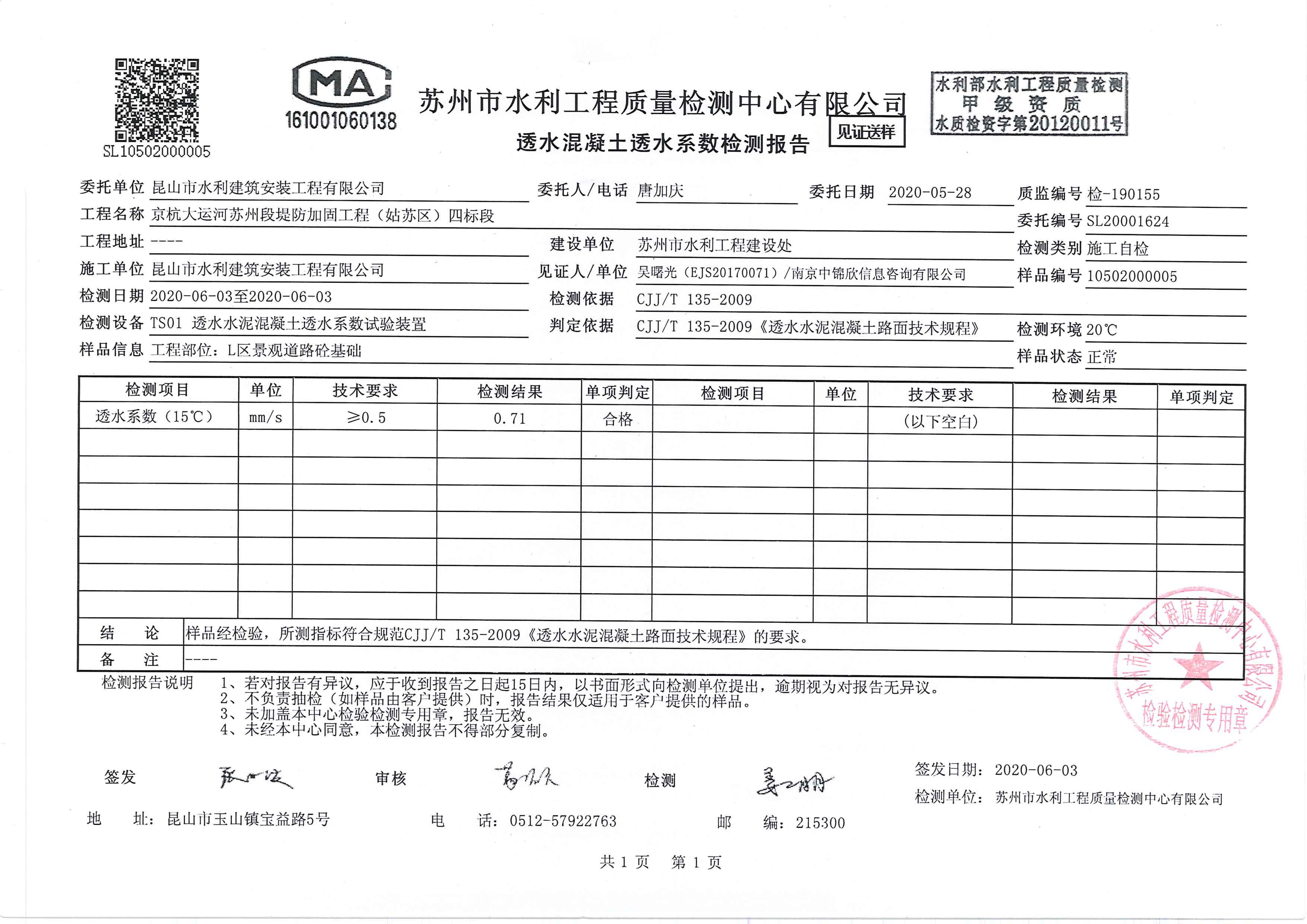 帕米孔藝術(shù)路面透水混凝土施工過(guò)程中,公司給予小組活動(dòng)充分的肯定和大力支持,本小組“帕米孔藝術(shù)路面施工質(zhì)量控制”QC活動(dòng)為我公司在蘇州市姑蘇區贏(yíng)得了良好的質(zhì)量口碑,本次QC活動(dòng)在很大程度上改善了帕米孔藝術(shù)路面的質(zhì)量,為實(shí)現京杭大運河堤防加固工程姑蘇段創(chuàng )優(yōu)目標打下基礎,為評選江蘇省水利工程文明工地創(chuàng )造了有利條件。在工程完工后,一次性驗收合格,觀(guān)感評定達到“良”,得到了建設、監理單位和上級有關(guān)部門(mén)的一致好評,同時(shí)也為我公司在以后類(lèi)似工程的施工中積累了經(jīng)驗。