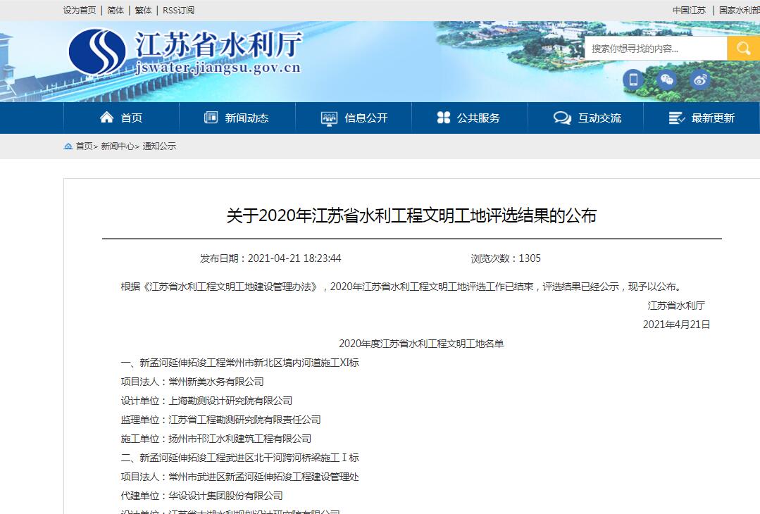 圖29 江蘇省水利工程文明工地評選結果公布