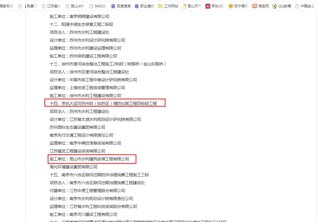 京杭大運河蘇州段[姑蘇區]堤防加固工程四標段工程被評為“江蘇省水利工程文明工地”。