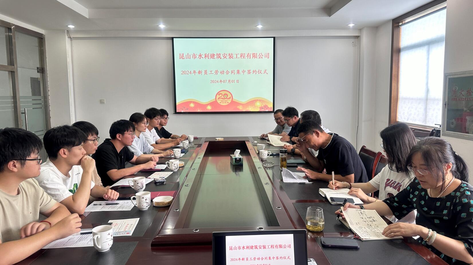 2024年7月1日,我公司舉行了新員工勞動(dòng)合同集中簽約儀式。會(huì )上公司各領(lǐng)導及部門(mén)負責人向新進(jìn)員工表示熱烈歡迎,并簡(jiǎn)要的介紹了公司各部門(mén)工作要求,應屆畢業(yè)生們自今天起便完成了從學(xué)生到職場(chǎng)人的轉換,期待他們在水利事業(yè)中不斷發(fā)光發(fā)熱,貢獻自己的一份力量!
